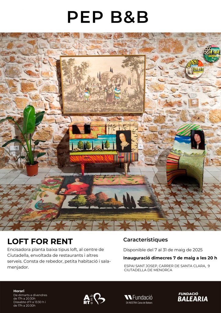L’artista mallorquí Pep Guerrero transforma la sala Sant Josep de Ciutadella en un apartament tipus loft amb molt d’encant, recreant espais com el rebedor, una petita habitació i la sala-menjador. Guerrero ha intervingut objectes quotidians, convertint-los en obres d’art plenes de color i significat. Els seus estampats vius, els paisatges amb arbres alineats i els rostres de personatges inspirats en pintures històriques o en el Pop Art donen nova vida a aquests objectes, elevant-los més enllà de la seva funció original.