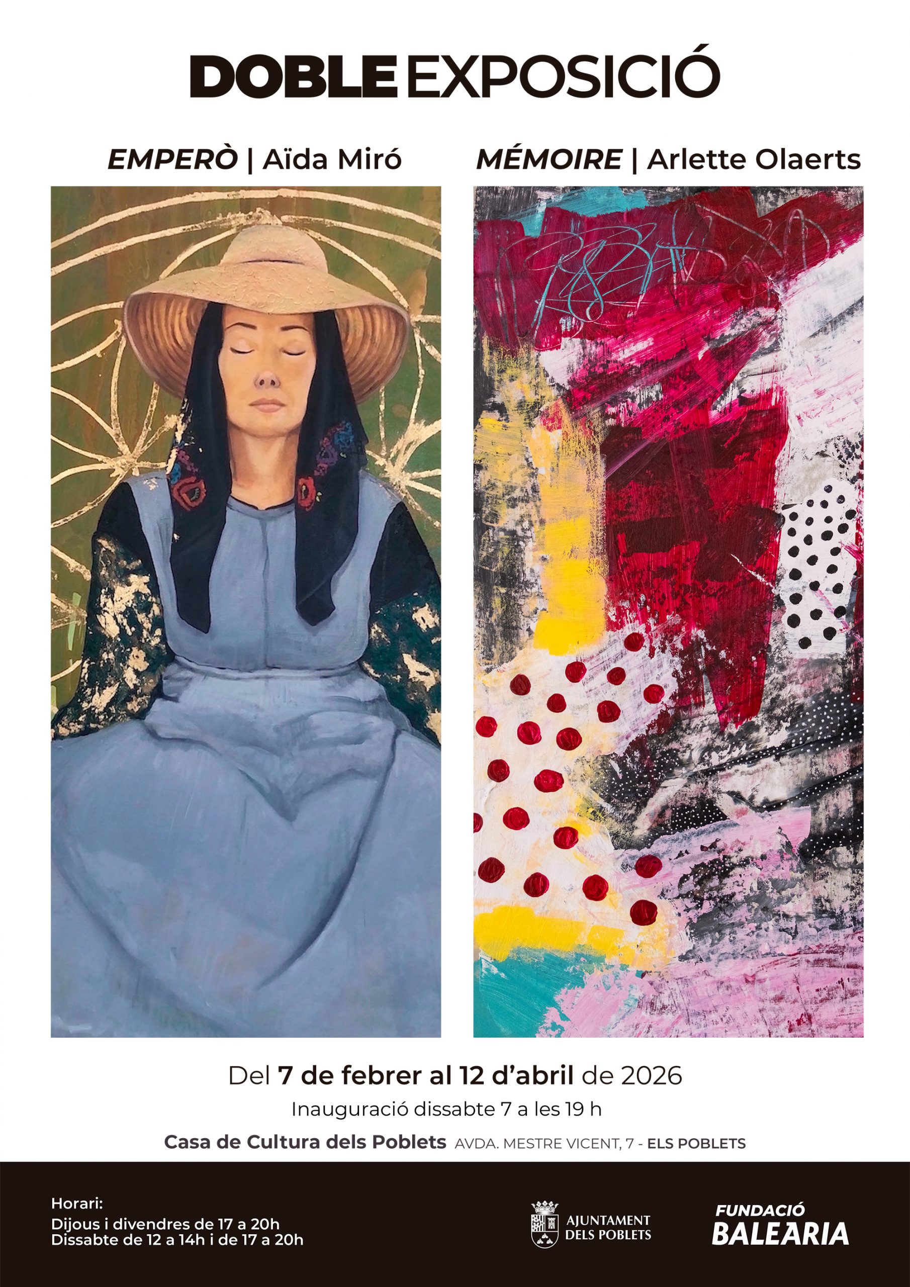 Featured Destacats 7 febrer-7:00 pm/12 abril-8:00 pm Doble Exposició: Emperò, Aïda Miró i Mémoire, Arlette Olaerts. Casa de la Cultura Els Poblets AVDA. MESTRE VICENT, 7, Els Poblets