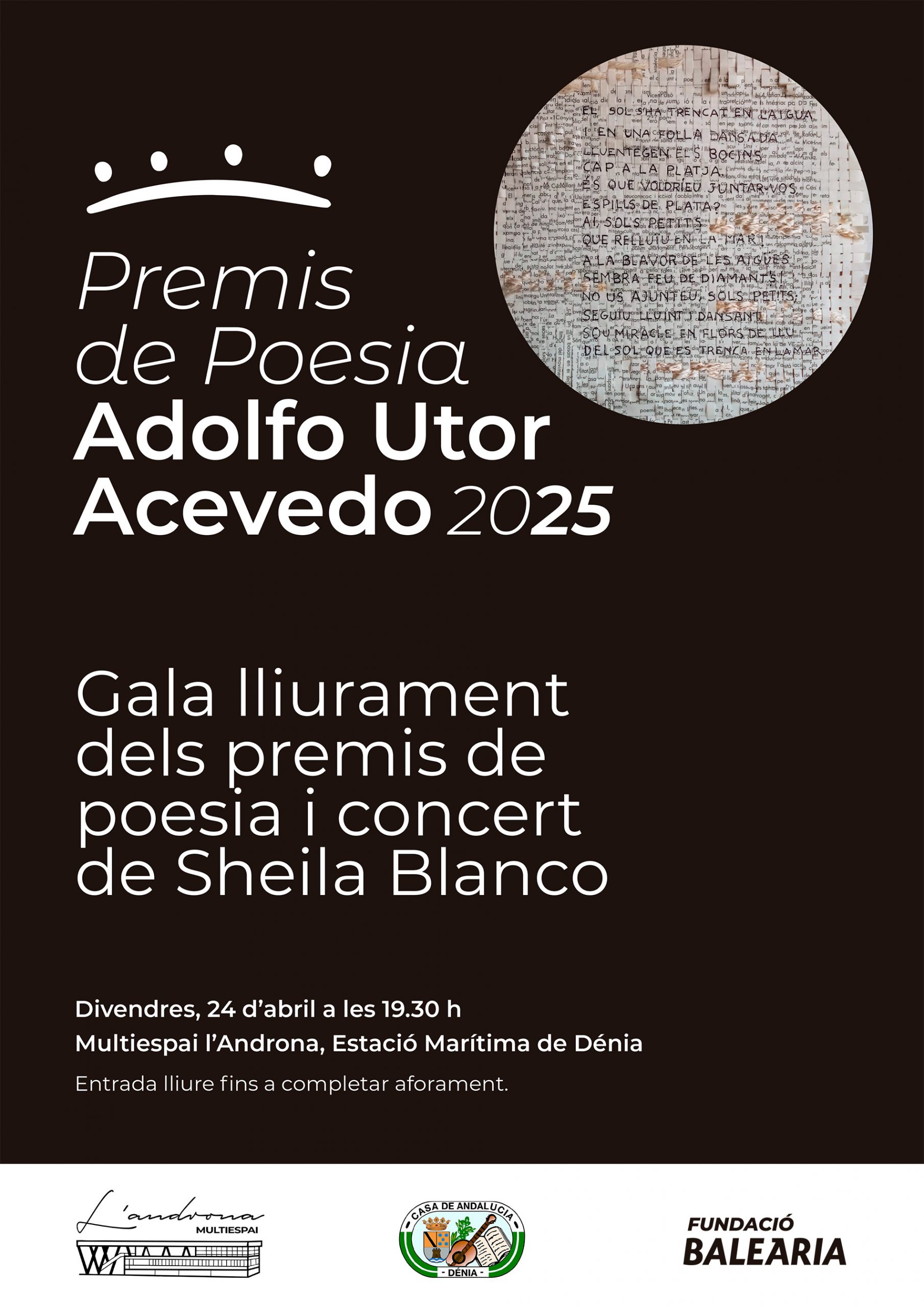 Featured 7:30 pm / 9:00 pm Gala dels Premis de Poesia Adolfo Utor Acevedo Featured 24 abril-7:30 pm/9:00 pm Gala dels Premis de Poesia Adolfo Utor Acevedo