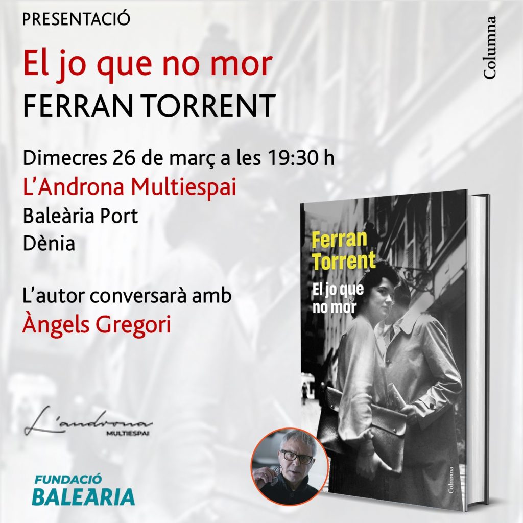 El escritor valenciano Ferran Torrent, una de las voces más reconocidas de la literatura en catalán, presentará su nueva novela, El jo que no mor, en Dénia el próximo miércoles 26 de marzo a las 19:30 h. El acto se celebrará en la Androna de la Estación Marítima de Baleària Port y contará con la participación de la poeta Àngels Gregori, quien acompañará al autor en la presentación.