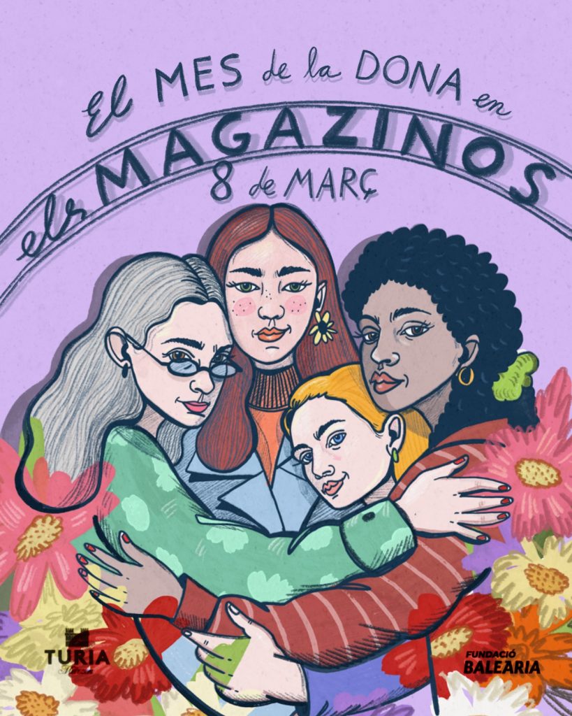 La Fundació Baleària y Els Magazinos, con la colaboración de Cerveza Turia, han preparado una programación especial para conmemorar en marzo el mes de la mujer, con una propuesta cultural diversa que pone en valor el talento y la creatividad femenina a través de exposiciones, talleres artísticos, presentaciones literarias y música en directo. El cartel de esta edición ha sido diseñado por la ilustradora valenciana, Carla Fuentes.